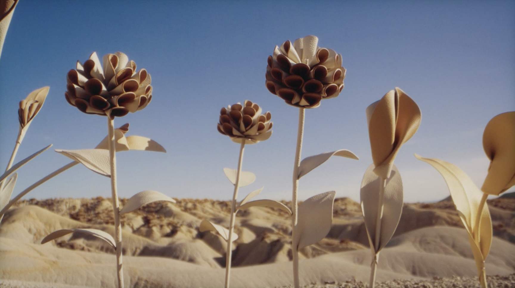 On-set supervision with drone photogrammetry of the terrain to reconstruct the desert in 3D. Photogrammetry for modelling the leather flowers. Lighting, rendering and compositing.